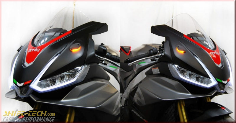 Plug-and-play mirror block off turn signals for Aprilia RSV4 riders is now available from New Rage Cycles.