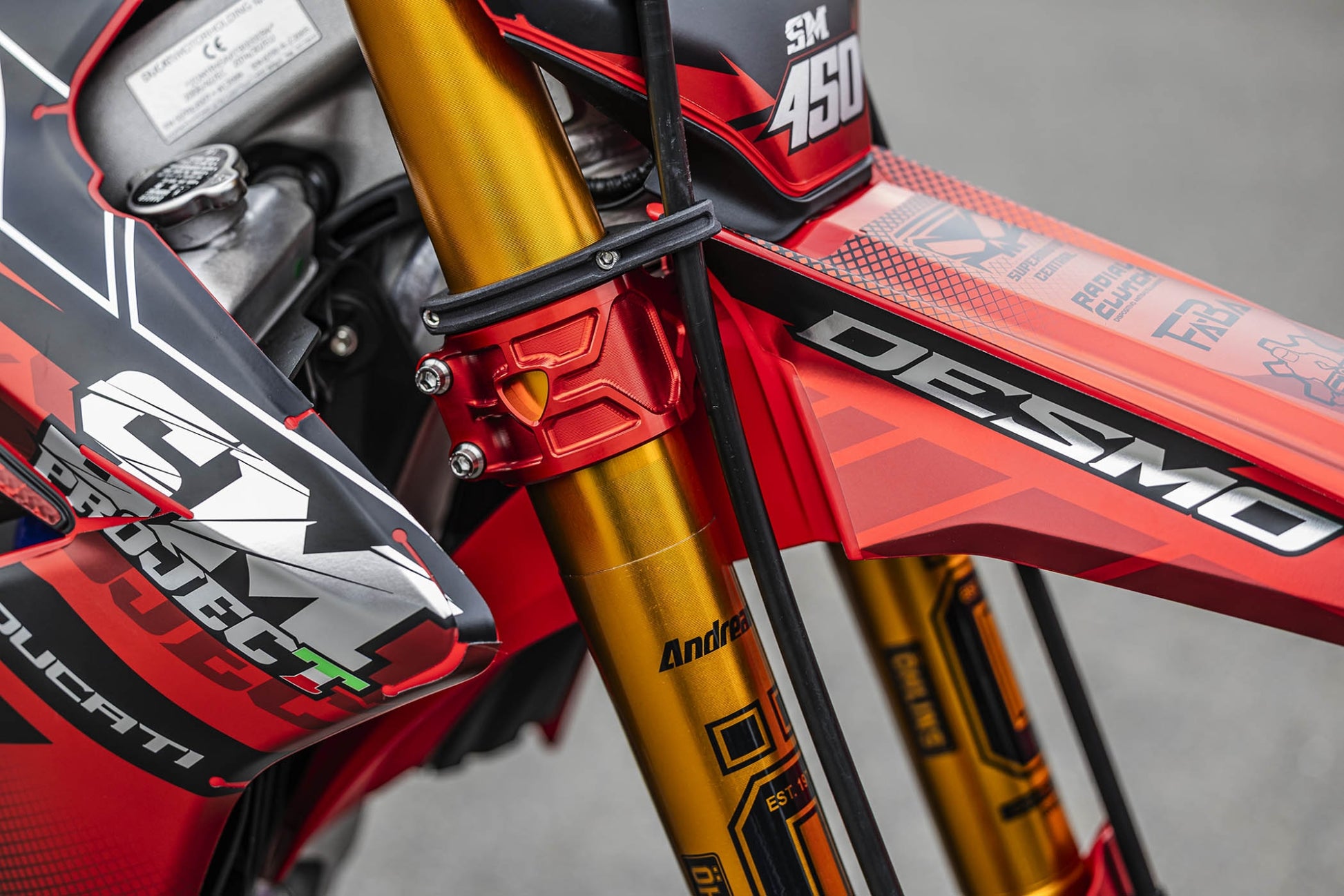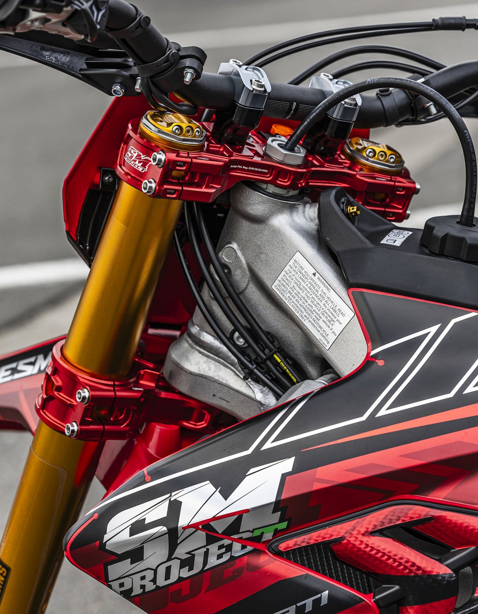 ST450-14 — SM-PROJECT Ducati Desmo MX 450 Supermoto Tripleclamps (14mm or 16mm Offset in Black or Red)
